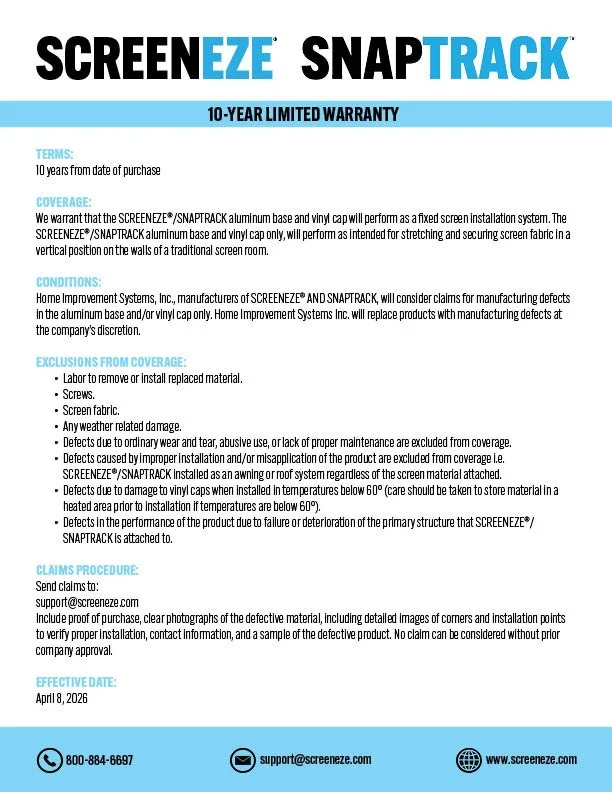 SCREENEZE® Cut Sheet